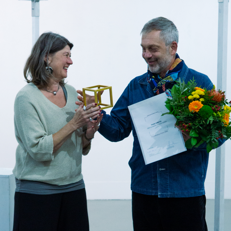 Der Hauptpreis des Kunstkubus 2025 wurde an Frank Homeyer verliehen. Seine Performance „Der Schmerz zu existieren“ überzeugte die Jury mit einer kraftvollen Verbindung von Körper, Raum und Material. Homeyer, der seit Jahren an den Schnittstellen von Performance, Klang und Bildender Kunst arbeitet, macht in seinen Projekten immer wieder die existenziellen Fragen unserer Zeit greifbar.