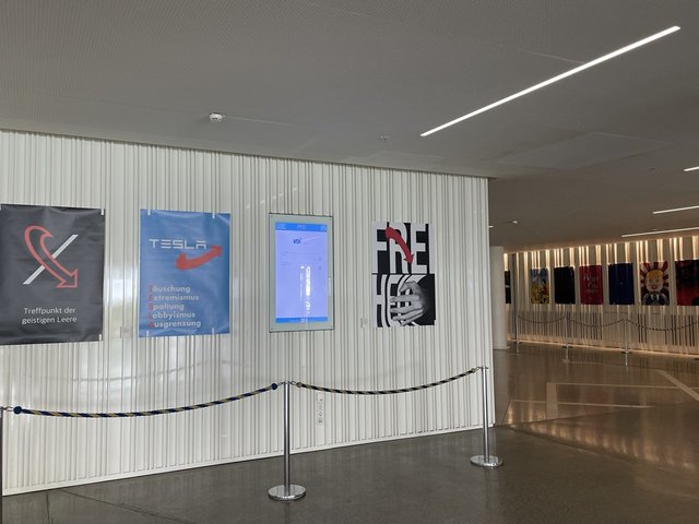 Die Plakate werden künftig Tausende von Menschen erreichen, die zu Kongressen und Tagungen ins Haus kommen – und auch jene, die die Veranstaltung der „Alternative“ besuchen.