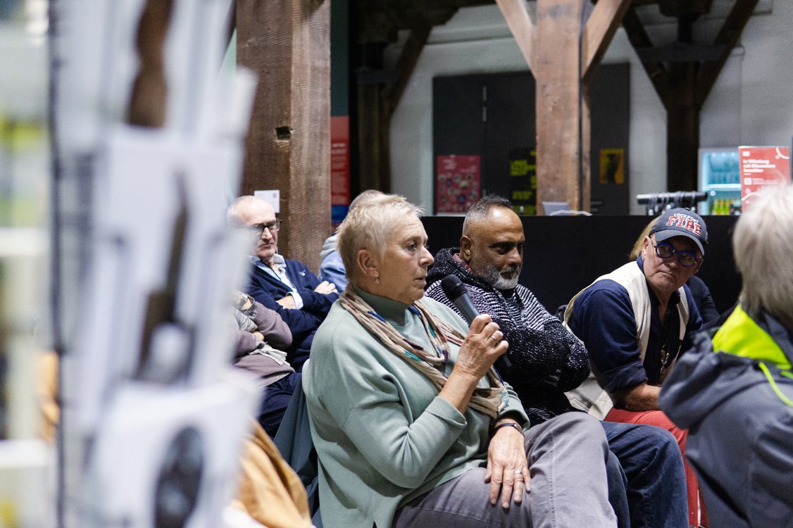 Das Publikum war zahlreich erschienen und beteiligte sich intensiv an der Diskussion. Für Muthesius war dies ein besonderer Moment: die Verbindung zwischen Kunst und gelebter Erfahrung. Auch Dr. Hurttig hob hervor, dass das MiK genau diesen Raum schaffen wolle – einen Ort der Begegnung, des Austauschs und der Verständigung.