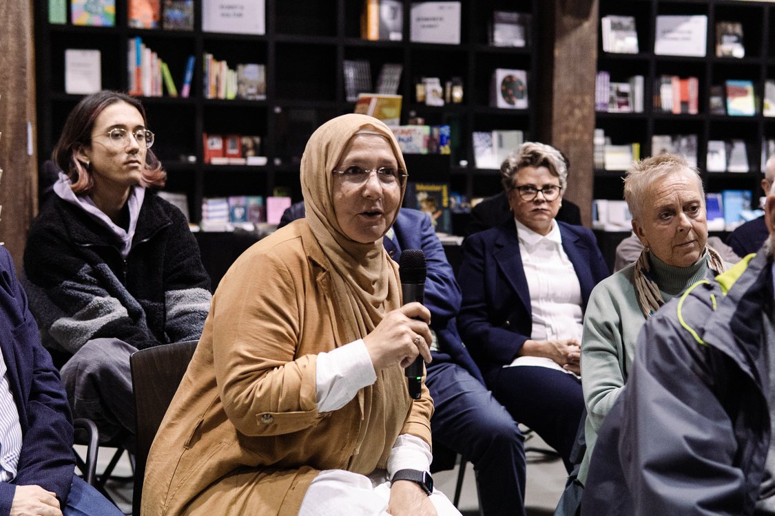 Im zweiten Teil des Abends brachte Dr. Pia Beckmann, Gründerin von pics4peace und Initiatorin des Projekts #endlichankommen, Teilnehmende der Reihe „1.000 Erfahrungen“ ins Gespräch. Sie erzählten, was Ankommen für sie bedeutet – sehr persönlich, manchmal überraschend und oft politisch.